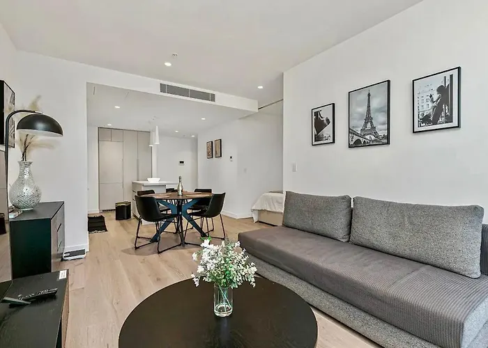 The ArtVo immersive gallery is 16 minutes' walk from the 62 m² apartment, while Crown Melbourne Casino is about a 10-minute ride away. Take a peaceful 10 minutes' stroll into the heart of Melbourne city centre. Luxury Apartment In Melbourne is nestled 2.7 km from the Royal Exhibition Building.